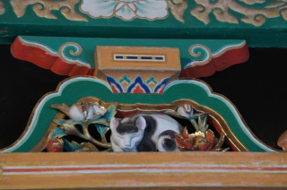 『日光東照宮』にて。 名匠、左甚五郎の作と伝えられている国宝の本社東回廊にある”眠猫”