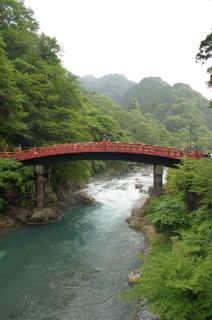 『神橋』 神橋の朱色、大谷川の川面と深緑(?)の何ともいえない組合せ、 とってもキレイでした。