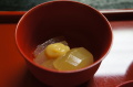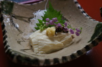 『堯心亭』にて。 ●刺身 生引上湯波 ●平椀 揚巻湯波 平印元