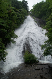 『湯滝』 湯ノ湖から流れ落ちる滝で、落差50m、幅25m。 奥日光三名瀑のひとつ。