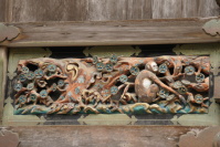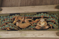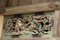 『日光東照宮』にて。 神厩舎の彫刻は、猿の一生を描きながら、人の生き方を伝えている 8ページの絵本”三猿の物語”になっているとか。 ●手をかざした母猿が子猿の将来を見ている ●子どものときは悪いことを「見ザル、言わザル、聞かザル」