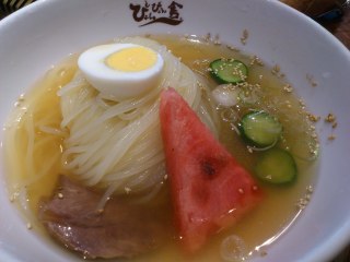 盛岡冷麺! 美味しかったけど・・・ 何か〜スイカのってるし(-_-;)
