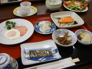 保養所にて。 今朝の朝食です。 以前は、洋食だったような・・・