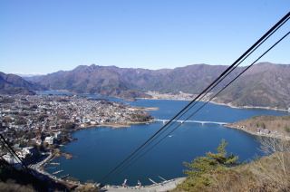 カチカチ山にて。 ロープウェイを降りると、眼下には河口湖が〜