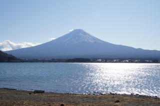 河口湖畔をサイクリング♪ 何度かこの辺りに来てるけれど、お昼過ぎまでこんなにキレイに見える ことって、ホント珍しいんよね。 だからか(?)、富士山に向かって、手を合わせてる人もいたよ(笑)