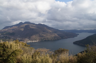 箱根芦ノ湖展望公園にて。 今にも降り出しそうな黒い雲がプカプカ浮かんでたよ・・・