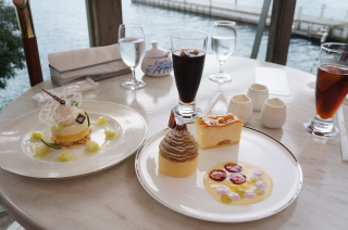 芦ノ湖を眺めながらの優雅な(?)ティータイム。
