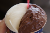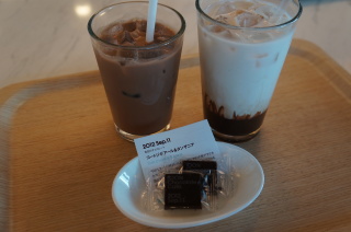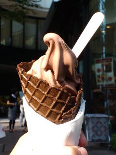 『GROM』でジェラートを食べたよ(*^_^*) ぐりは、スーパービターチョコとミルク。 ぐりパパは、トロンチーノとミルク。