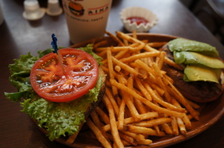 『KUA AINA』でブランチ。 アボカドバジルバーガーをオーダー。 ポテト大盛りっ!!!
