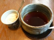 定期検診の後、東京ドーム近くにある『神楽坂茶寮』でブランチ。 茶粥と、食後のドリンクに紅茶をオーダー。 紅茶のカップ、カップというより、お抹茶の器みたい・・・