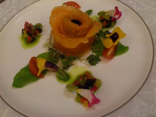 富士宮サーモンのマリネ お花畑風。