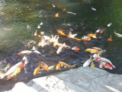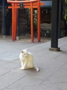 ぐり、餌持ってないのに、コイが寄ってきた。 そして、境内には白いネコが座ってたよ。
