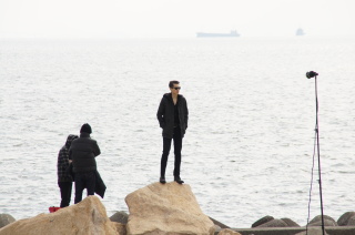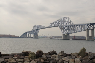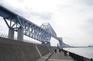 公園内にある海釣り施設側から見た、ゲートブリッジ。 ほぼ、真下やね。