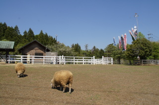 羊が放牧されてたよ。 こいのぼりも、気持ちよさそうに泳いでた。