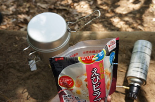 ぐりパパ待望の(?)ランチ。 まず、ぐりパパの炒飯と、ぐりのピラフ用に、お湯を沸かして〜 お湯を入れて15分くらい待つと出来るみたい。 その間に、更にお湯を沸かして、ラーメンを作ったよ。