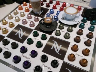 セミナー会場には、カプセルがズラリ〜。 まだ、味の違いが分からないなぁ(゜-゜)