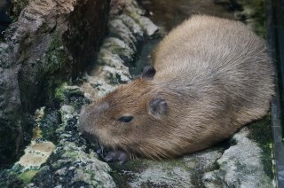 カピバラ、じっとして、おとなしそうだけれど・・・