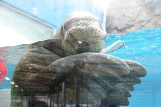 この、セイウチ、ずぅっとホースで遊んでたよ^_^;