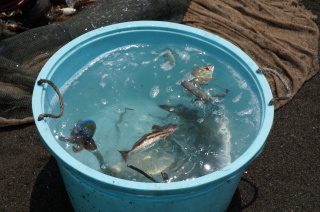今回は、ホント、不漁だったみたい。 少し離れたとこでも、地引き網漁が開催されてたみたいなんだけど、 そこも不漁。 ちょっと前に、地元の子供会(?)で開催された時も不漁だったみたい・・・ 何かの前触れ???