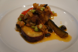 お魚料理。 ベーコンで巻いた海老の叩き身詰め イサキのロースト お魚料理とは思えないぐらい、食べやすかった!!!