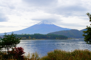河口湖畔をサイクリング〜。 ドンヨリしていて、なかなかキレイに撮れないなぁ。