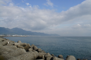 三保の松原にて。 ちょっと見えるかなぁ〜 富士山のてっぺんだけ、ちょこっとみえてるんよね・・・