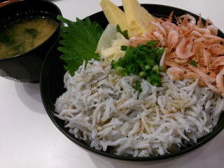 駿河湾沼津SAで食べた、しらすと桜エビのどんぶり。