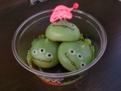 小腹がすいたので・・・ 初めて食べた、リトルグリーンまん。 味が3種類あったみたいで、ぐりパパ、ひと口で食べたから、 「味が分からんかった」って言う。。。 お昼過ぎ、ちょっと暑かったので、アイスクリームを食べた(^−^) 美味しかった〜