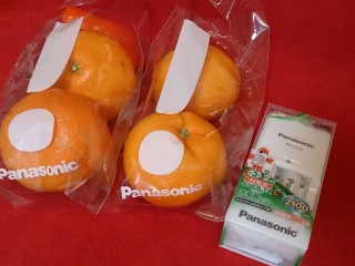 イベントでもらった、充電器&充電池と、みかん。 みかん、重たかった・・・
