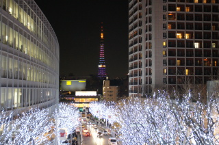 けやき坂から、オリンピックカラーダイヤモンドヴェールの東京タワーが