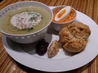 『TORAYA CAFE』にて。 もう、外での食事も安心(^−^) 何でも食べられるよ! あっ! まだ、ステーキは試してないけど、大丈夫か、コレは(笑) 季節の野菜スープとスコーン、ドリンク。