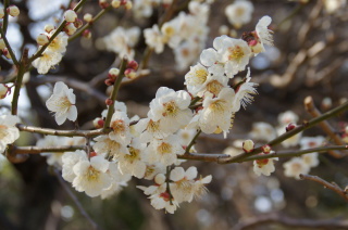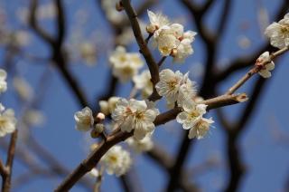 ほぼ満開の梅。 この近くで、4人のマダム、いや、オバちゃんが大きな声で喋ってた(笑) 暖かくなってきて、お花も咲きはじめたら、話にも花が咲いたんやね。