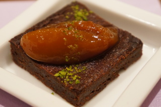 『JOEL DURAND』にて。 ブラウニーもよばれました! ミント風味(?)のピーチ添え。 美味しかったですぅ(*^_^*)