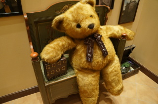 『JOEL DURAND』にて。 1階から2階に上がる階段の踊場に、大きなくまのぬいぐるみが。。。