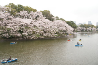 ボート乗場の上が、展望デッキになっていて・・・ そこから撮りました。 水面スレスレまで、サクラが咲いてるね。