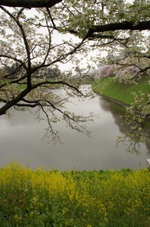 菜の花とサクラのコラボ。 青空だったら、もっとキレイだっただろうに。。。