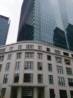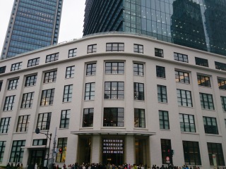 道を挟んで向かい側は、高層ビルが建ち並ぶ丸の内。 日本の今昔を楽しめるトコやね。