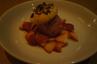 こちらが『bills×東京ウォーカー コラボメニュー』 ストロベリーアイスクリームをビスケットでサンドされたもの。 まわりにイチゴのスライスが・・・ 美味しかったぁ〜(^−^)