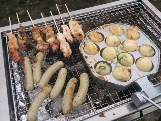 ぐりのとこ・・・ 焼鳥、ウィンナー、たこ焼。 たこ焼、全部で80個ほど焼いたけど、大盛況!