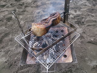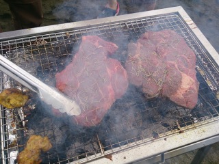 知らない人(?)が大きなステーキを焼いてたよ。