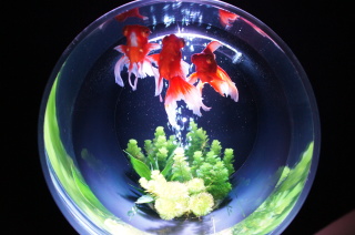 金魚の名産地出身だけど、こういうアートな金魚は初めて。