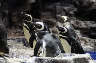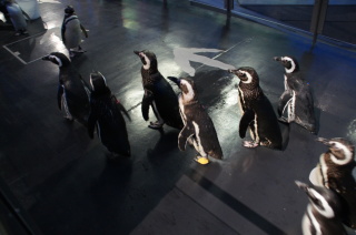 ペンギンのお散歩(?)。 ペンギンって群れをなす習性があるらしく、 まだ、”お家に帰る”時間じゃないのに、1羽が動き出すと、 みんなついて行っちゃった・・・