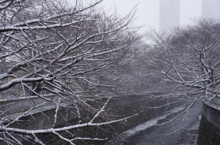 神田川沿いの雪化粧。
