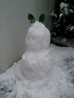 マンションの中庭の雪だるま、大丈夫だったみたい。 植栽が、雪で覆われてる・・・