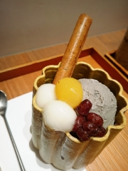 『叶匠寿庵』にて。 ぐりパパの黒胡麻パフェ。 美味しそう(^−^)