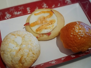 ショーの場所取り中、小腹がすいたので、パンを食べたよ。