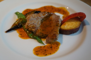 柔らかく日本酒蒸しした豚バラ肉を枝豆入りグリヴィッシュソースで