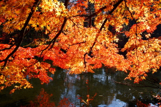 雲場池。 朝陽が当たったもみじ。 キレイだね。