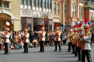 ディズニーの音楽隊。 中学生の頃、これになりたかったのを思い出した・・・ 実際は、「楽器できます」ぐらいのレベルでは、到底ムリな感じ。