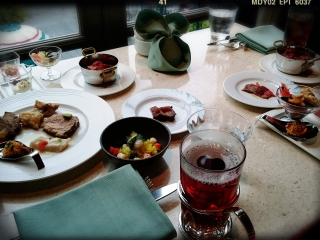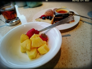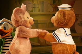 ミッキー&ミニーの焼印のある、パンケーキ。 どこから食べようかなぁ〜。